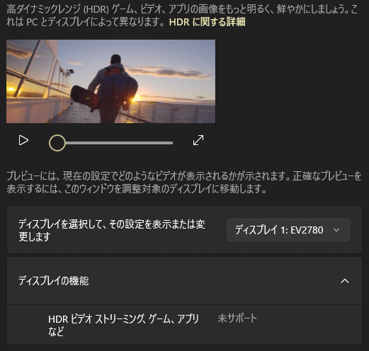 「未サポート」はディスプレイがHDR非対応であることを示しています。