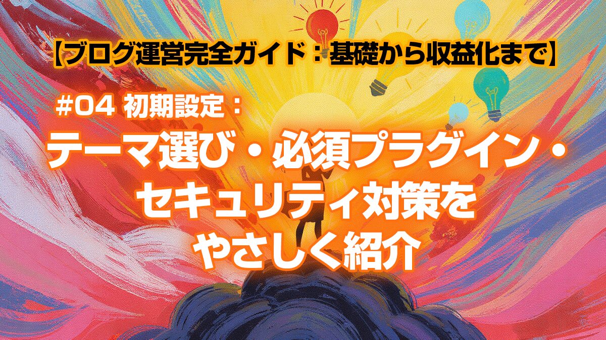 以上、【ブログ運営完全ガイド:基礎から収益化まで】#04 初期設定:テーマ選び・必須プラグイン・セキュリティ対策をやさしく紹介でした。