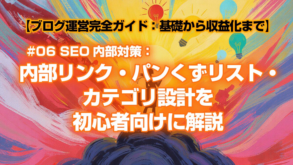 以上、【ブログ運営完全ガイド:基礎から収益化まで】#06 SEO内部対策:内部リンク・パンくずリスト・カテゴリ設計を初心者向けに解説でした。