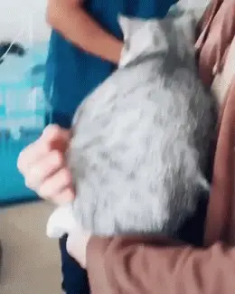 62.治療が怖くて飼い主のわきに顔をうずめる