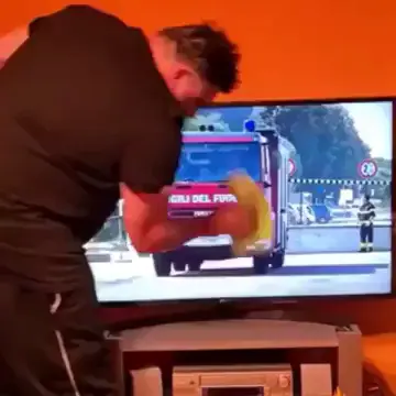 18.テレビが傾き消防車がバランスを崩す
