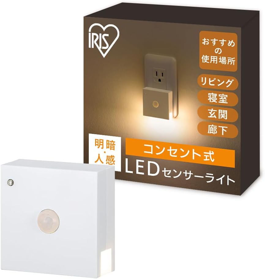 アイリスオーヤマ LEDセンサーライト コンセント式 フットライト 人感センサー 明暗センサータイプ CSL-MS