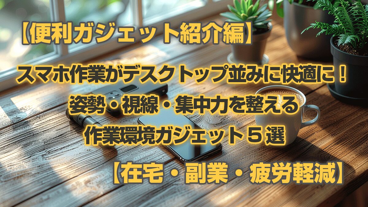 以上、【便利ガジェット紹介編】スマホ作業がデスクトップ並みに快適に!姿勢・視線・集中力を整える作業環境ガジェット5選【在宅・副業・疲労軽減】でした。