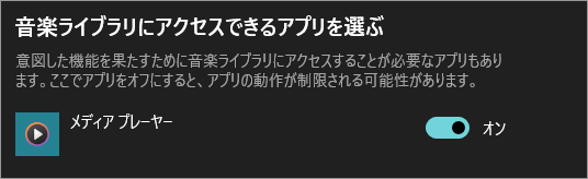 オフにすると、すべてのアプリが音楽ライブラリへアクセスできなくなり、再生や編集が正常に行えない場合があります。