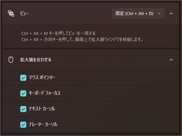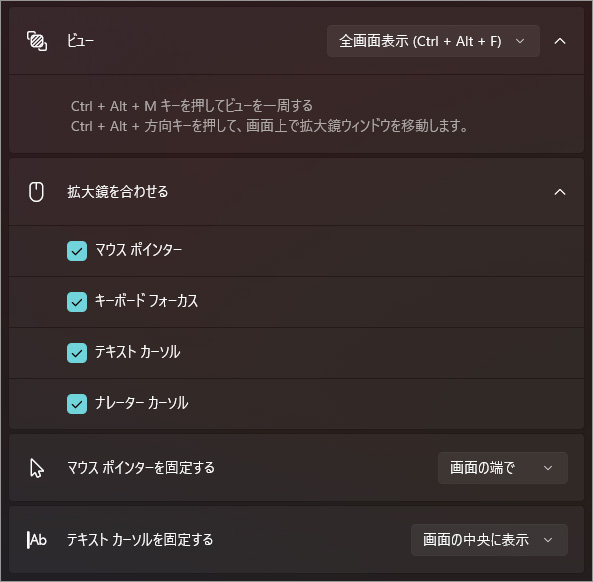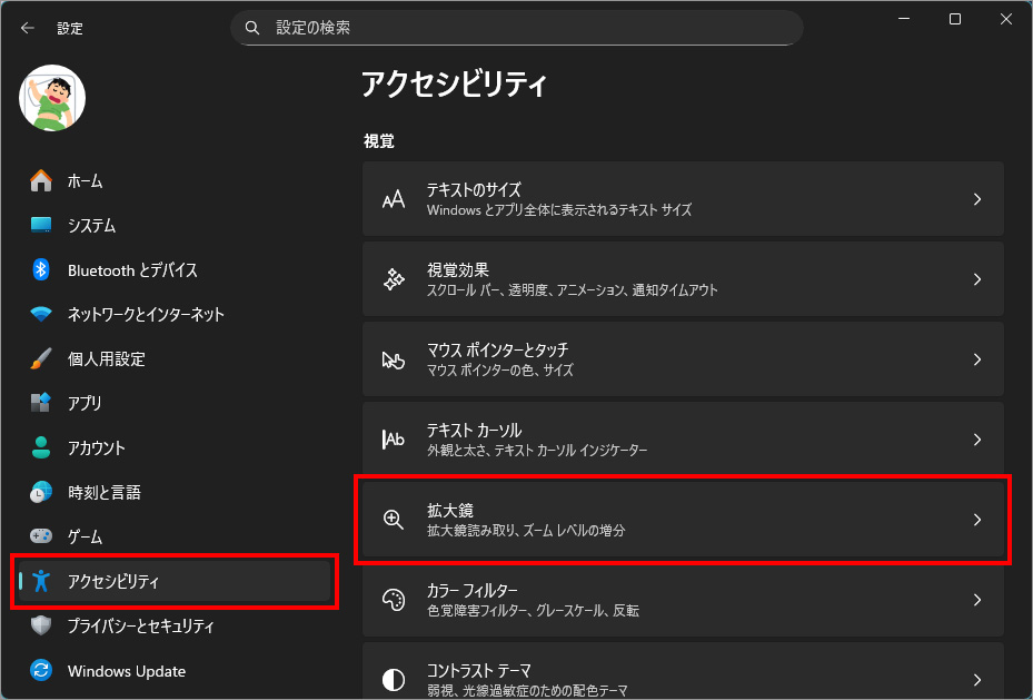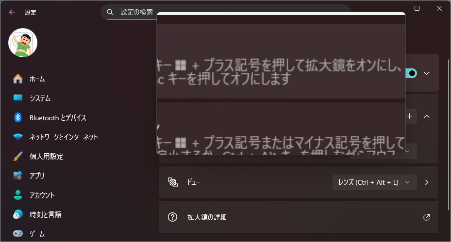 Windows 11 画面全体や一部を拡大表示し、細かい部分を見やすくする設定[設定>アクセシビリティ>拡大鏡]