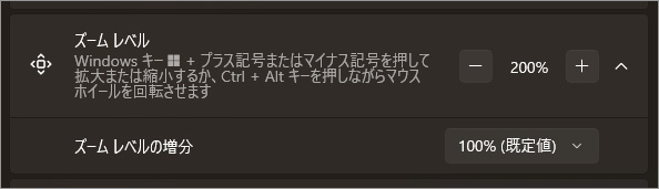 • 拡大率はショートカット(Windowsキー + +/−)でも変更でき、作業中でも素早く調整できる。