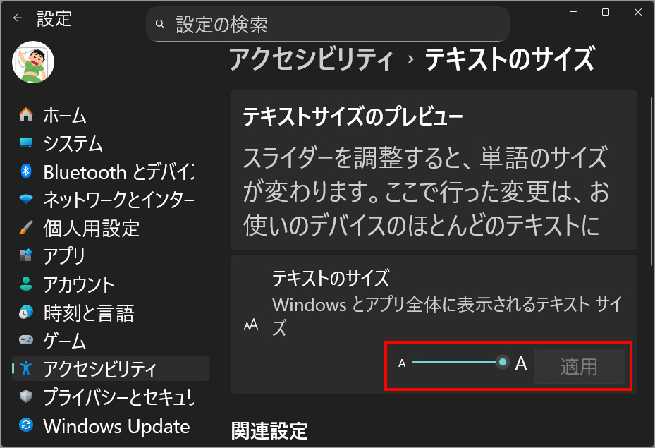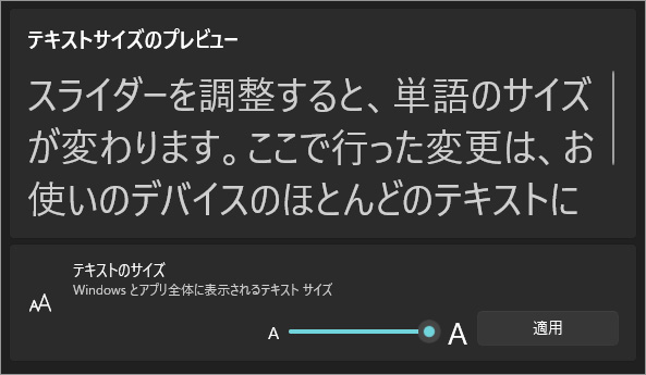 以上、Windows 11 画面に表示される文字サイズを変更し、目の負担を減らして読みやすくする設定[設定>アクセシビリティ>テキストのサイズ]でした。