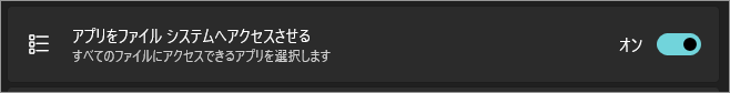 オンにすると、対象のアプリはファイル システム全体にアクセスできるようになります。