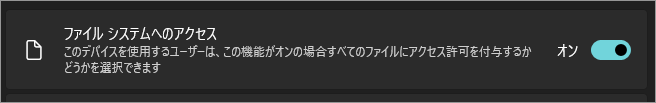 オンにすると、対応しているアプリはファイル システム全体にアクセスできるようになります。
