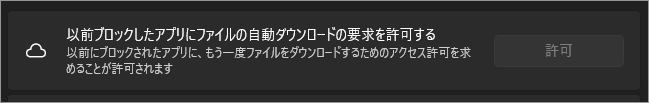 「以前ブロックしたアプリにファイルの自動ダウンロードの要求を許可する」とは