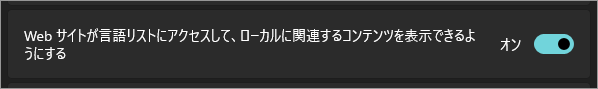 あなたの Windows に設定されている“使用言語のリスト”を、Web サイトが読み取ってもよいかどうかを決めるスイッチ。