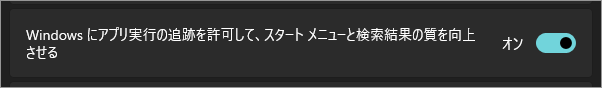 - オン → Windows がアプリの起動履歴を記録する