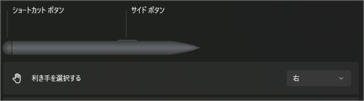 ペン入力時に使用する利き手を指定する設定です。右利き・左利きをタブで切り替えて選択できます。