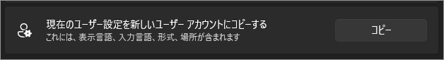 この項目は、今ログインしているユーザーの言語・地域設定を「PC全体の共通初期設定」として反映させるための機能です。