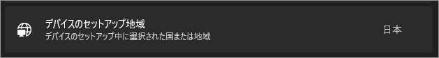 日本で購入・初期設定されたPCであれば、デバイスのセットアップ地域:日本と表示されているのが正常です。