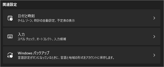 以上、Windows 11 表示言語や入力言語、地域(国)に関する設定をまとめて管理する[設定>時刻と言語>言語と地域]でした。