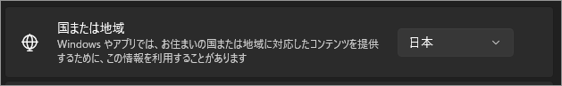 Windows に対してこのPCは どの国・地域のルールで使われているかを伝えるための設定です。