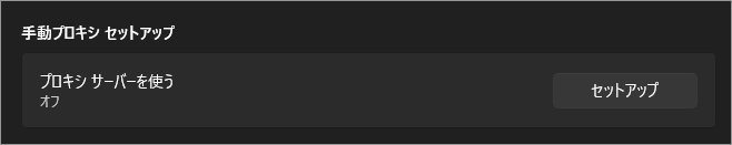 「手動プロキシ セットアップ」は、ユーザーが直接プロキシサーバーを指定して、通信を必ずその経路に通すための設定です。柔軟に除外リストも設定できるため、企業や特定用途でよく使われますが、家庭環境では通常オフのままで問題ありません。