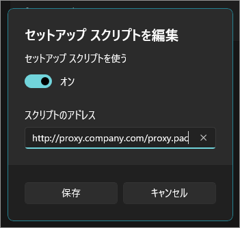 上のアドレス「http://proxy.company.com/proxy.pac」は一例で、企業や学校のネットワーク管理者が自由に決めます。