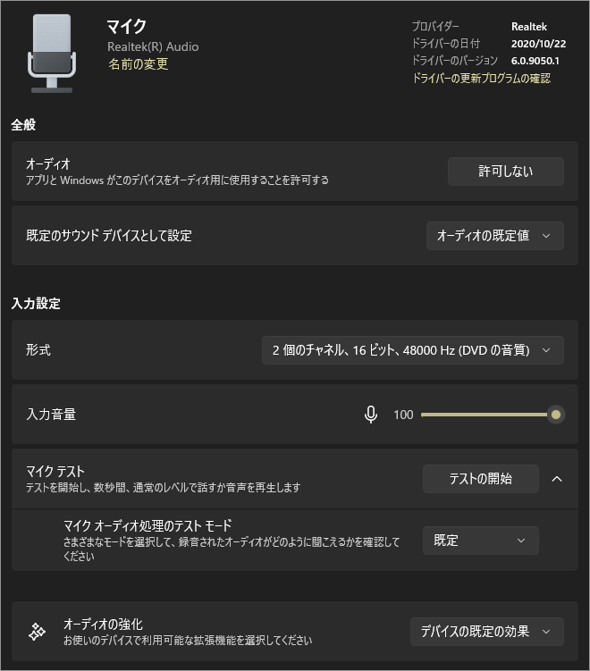スピーカーやヘッドホンの音を、聞き取りやすく・迫力ある音に補正するための機能群です。 デバイスやドライバーに応じて、以下のような処理がまとめてオン/オフされます。