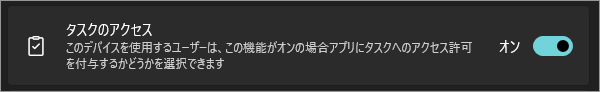 「タスクのアクセス」をオンにすると、Windows は「タスク情報をアプリが参照してもよい」状態になります。