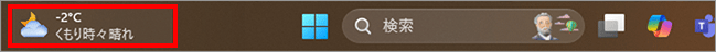 「ウィジェット」を「オン」にすると、タスクバー左に「ウィジェット」ボタンが表示されます。