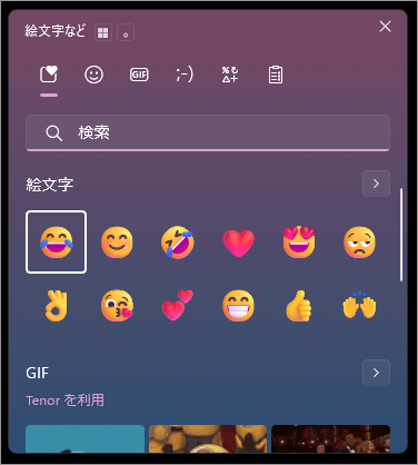 絵文字、顔文字、記号、クリップボード履歴などを呼び出すボタンです。クリックすると入力補助パネルが開き、文章入力中に素早く特殊文字を挿入できます。
