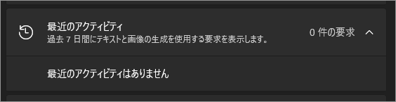 「最近のアクティビティ」に並ぶのは、過去7日以内に生成機能の利用を要求したアプリの一覧です(“生成した結果の内容”ではなく、“要求したアプリ”)。