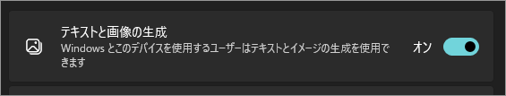 「テキストと画像の生成」をオンにすると、Windows 11 や対応するアプリで AI による文章生成や画像生成機能が利用できるようになります。