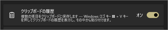 クリップボードの履歴を「オン」にしすると、直前にコピーしたものだけでなく、それ以前にコピーした文字や画像などもクリップボード上に保持できるようになります。