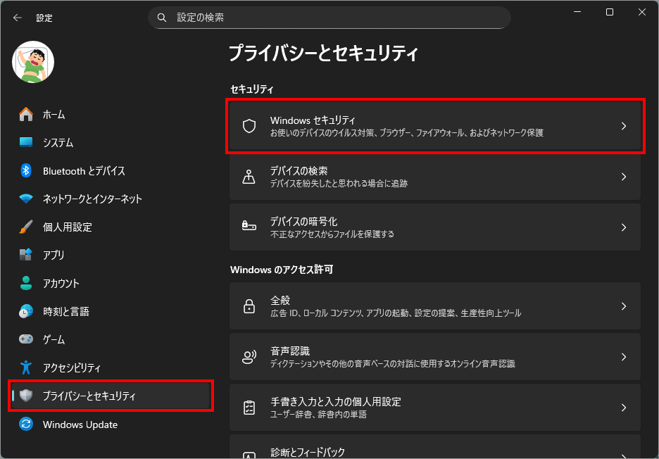 [Windows セキュリティ]は、PC を守るための主要な防御機能をまとめた管理画面です。
